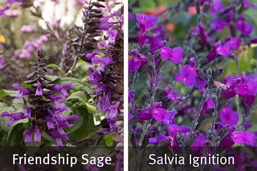 While many varieties of salvia show off their Ultra Violet blooms, we’ve chosen Friendship Sage - Salvia x 'Amistad' and Plant and Vibe® Ignition Purple Salvia - Salvia x jamensis 'Ignition Purple' to share with you.